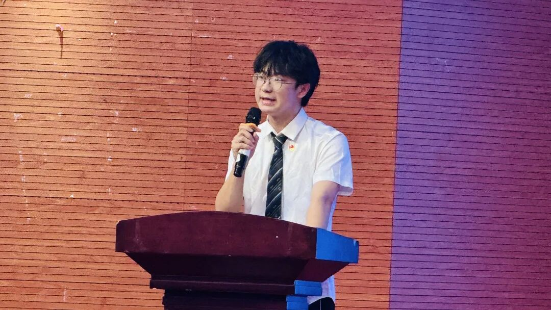 余尔学姐用诙谐幽默的语言,回忆了与黄老师在工作中的暖心互动,一字一句充满了对黄昊老师的不舍。在最后,余尔学姐说道:“感谢黄昊老师,感谢我们自己,感谢在大学三年里一切恰逢其时的存在。‘我见青山多妩媚,料青山见我应如是。’青山不改绿水长流,祝在座的各位前程似锦,来日方长。”
