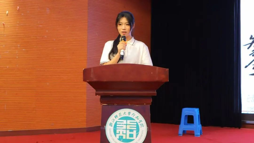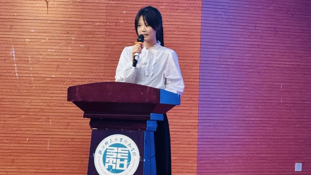 阮妍茜作为干事代表发言,向老师和学长学姐致谢。她感慨在加入法学院学生会的一年中,我们都在不断地成长。在参与国家宪法日等活动的筹备过程里,同学们携手应对挑战,更加深刻地理解了责任,收获成长。展望未来,她认为成员间的团结互助是发展动力,希望大家怀揣热忱,服务同学、建设校园,祝愿法学院学生会再创辉煌。