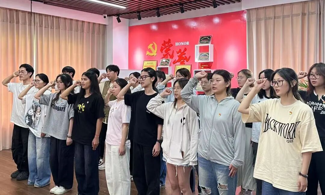 法学院本科生第一第二党支部党员佩戴党徽后,由张堃老师领誓,面向党旗庄严宣誓:“我志愿加入中国共产党,拥护党的纲领,遵守党的章程,履行党员义务,执行党的决定,严守党的纪律,保守党的秘密,对党忠诚,积极工作,为共产主义奋斗终身,随时准备为党和人民牺牲一切,永不叛党。”