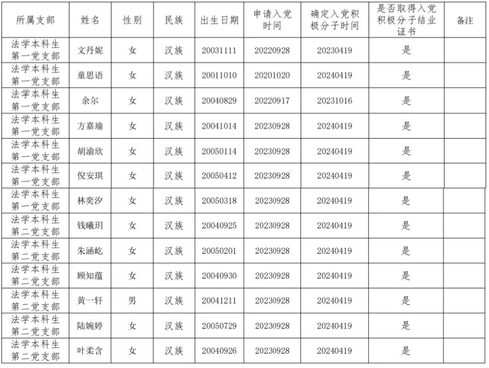 根据本人申请、组织培养,拟吸收文丹妮等13 名同志为党员发展对象,现将有关情况予以公示。