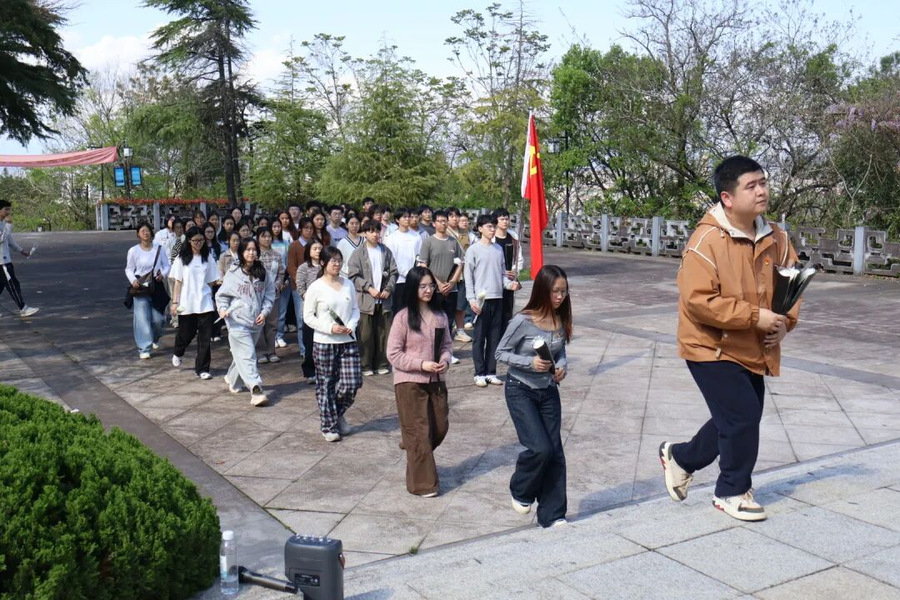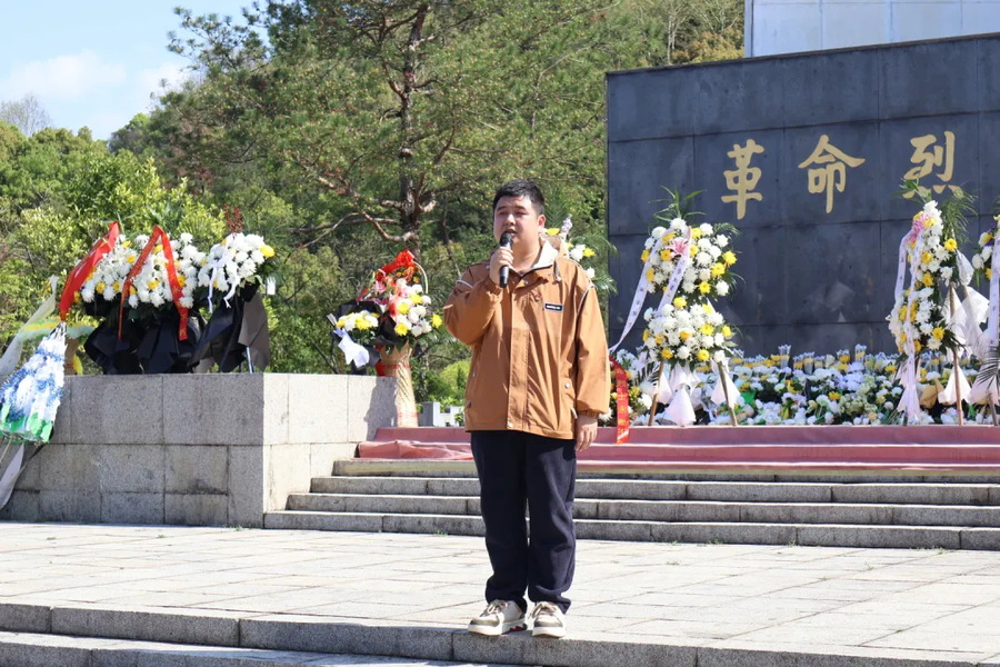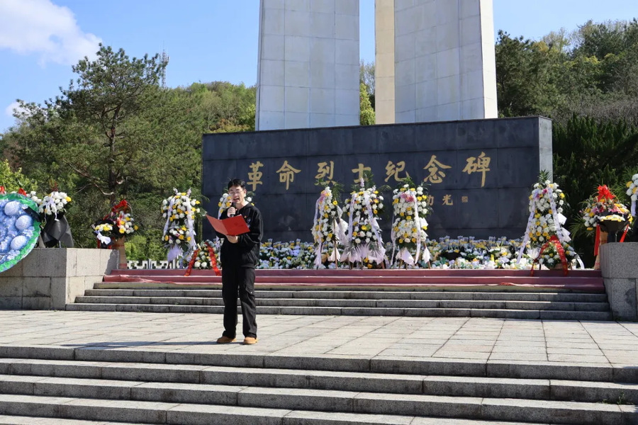 希望同学们以先烈为榜样,不畏艰难、勇担使命,在新时代的征程中奋发有为,在祖国发展的历史长河中书写属于我们这一代人的青春华章,撑起一片属于青年的广阔天地。