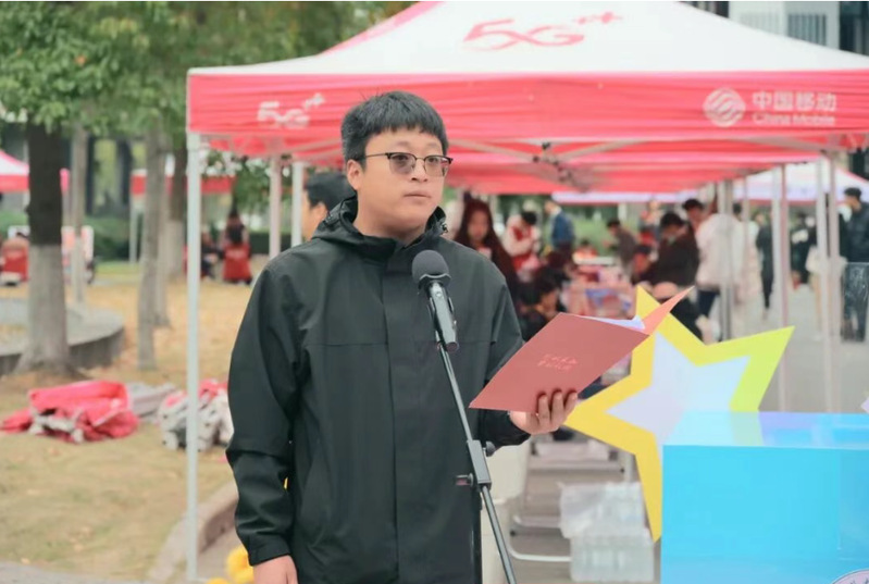 工学院“小青砖”志愿服务队负责人黄奕同学作为志愿者代表发言。其讲述的行知志愿者深入城乡的足迹,生动诠释了“知行合一,自强不息” 的行知精神。