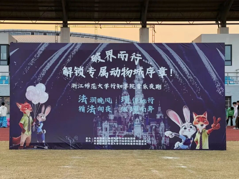 2025年12月11日晚浙江师范大学行知学院疯狂动物城主题夜跑活动在北田径场举行。